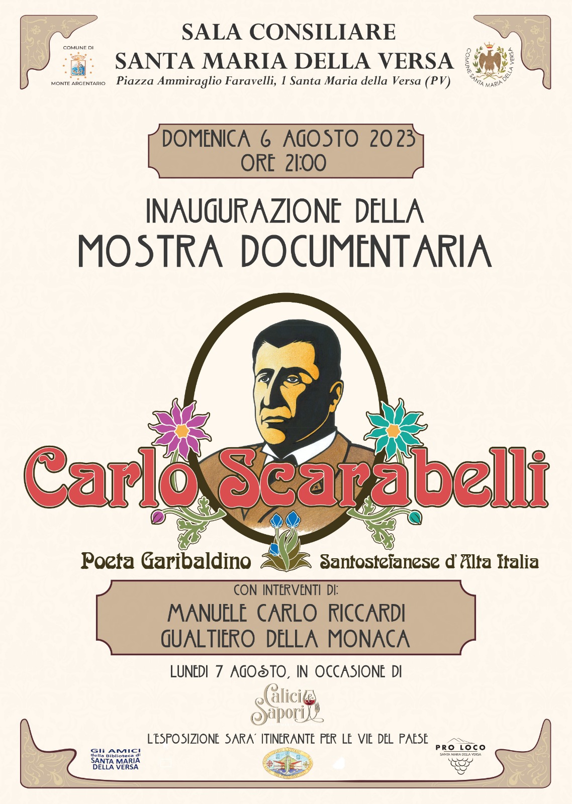 L'Amministrazione Comunale di Santa Maria della Versa, in collaborazione con il Comune di Monte Argentario, organizza una mostra documentaria dedicata alla vita di Carlo Scarabelli, poeta garibaldino, Santostefanese d'Alta Italia.