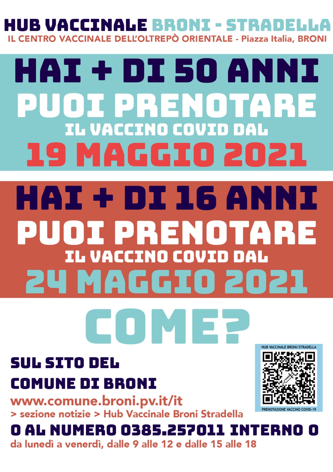 💉A partire da mercoledì 19 maggio 2021 sarà possibile prenotare il Vaccino anti-covid-19 presso L'hub Vaccinale Broni - Stradella.