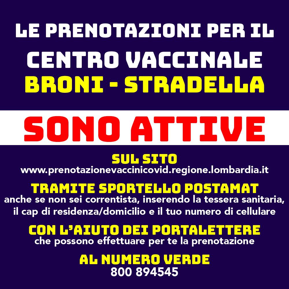 E' attiva la prenotazione per il Centro Vaccinale Broni-Stradella