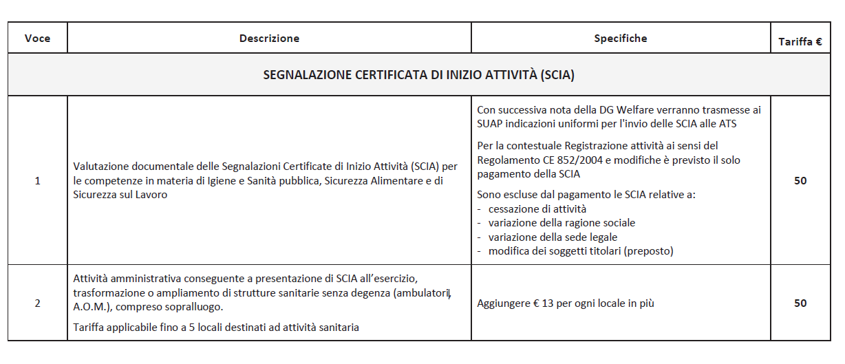 DIRITTI SANITARI ATS PAVIA PER PRESENTAZIONE SCIA